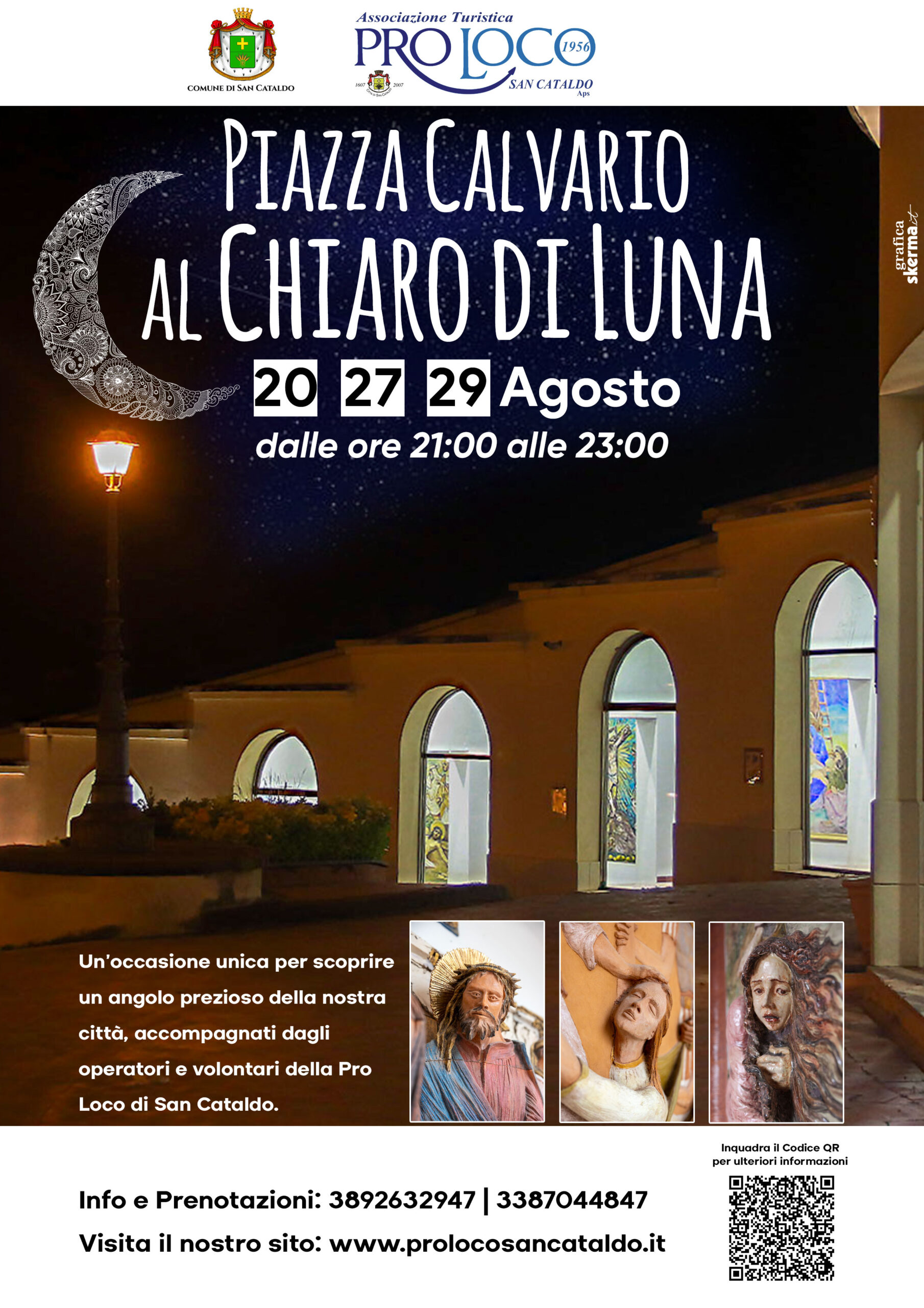 [fbl_login_button redirect="" hide_if_logged="" size="large" type="continue_with" show_face="true"]Piazza Calvario di notte. Le cappelle di Piazza Calvario con le sue ceramiche saranno aperte al pubblico nei giorni 20 27 e 29 agosto dalle ore 21.00 alle ore 23:00. La visita sarà accompagnata da operatori e volontari della Pro Loco di San Cataldo. Diversamente basta prenotare la visita telefonando alla Pro Loco, ai nn 3892632947 o al n. 3387044847.