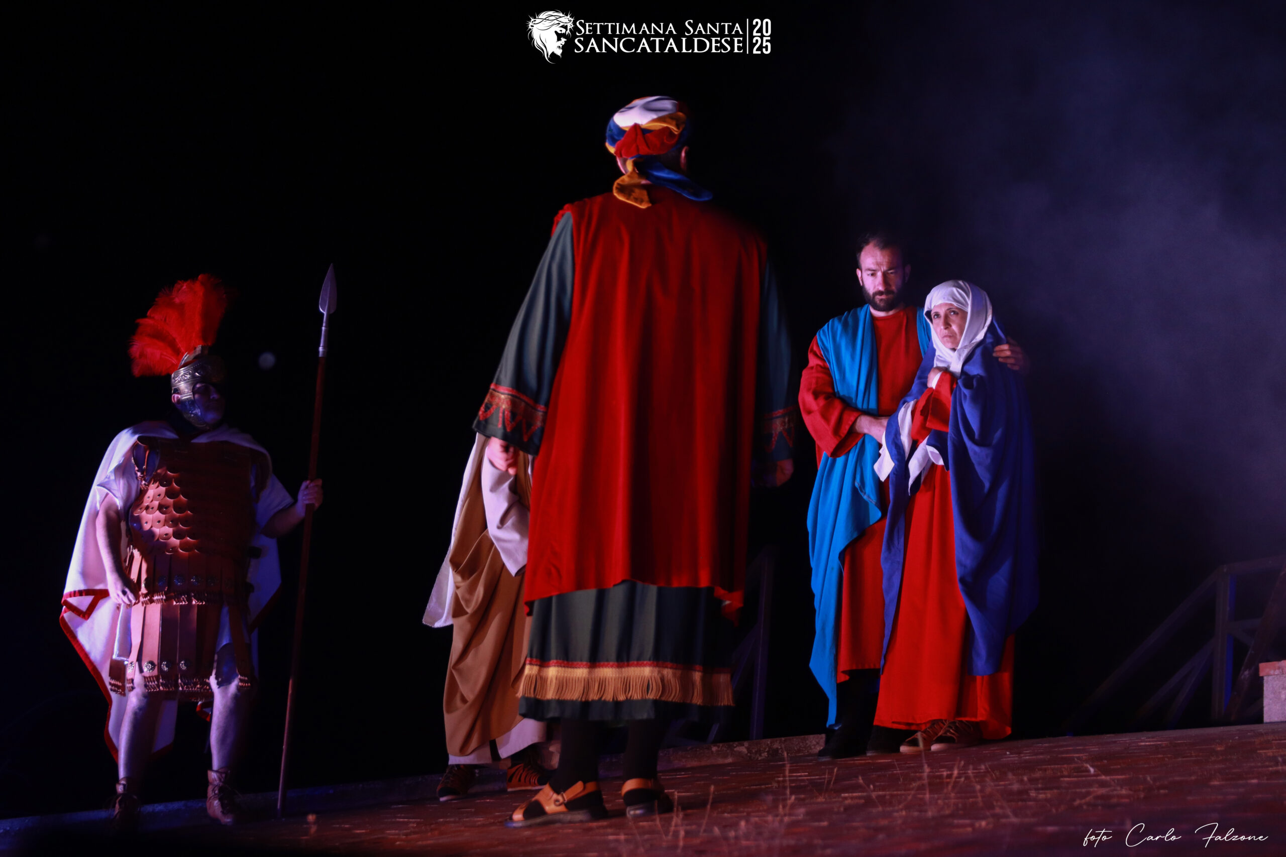 La rappresentazione si svolge presso il “Calvario”, uno spazio scenografico permanente arricchito da maioliche artistiche che illustrano le tappe della Passione di Cristo. Durante l’evento, dopo la crocifissione, il corpo del Cristo viene deposto dalla croce e adagiato in un’urna funeraria storica, che sarà poi portata in processione fino alla Chiesa Madre.