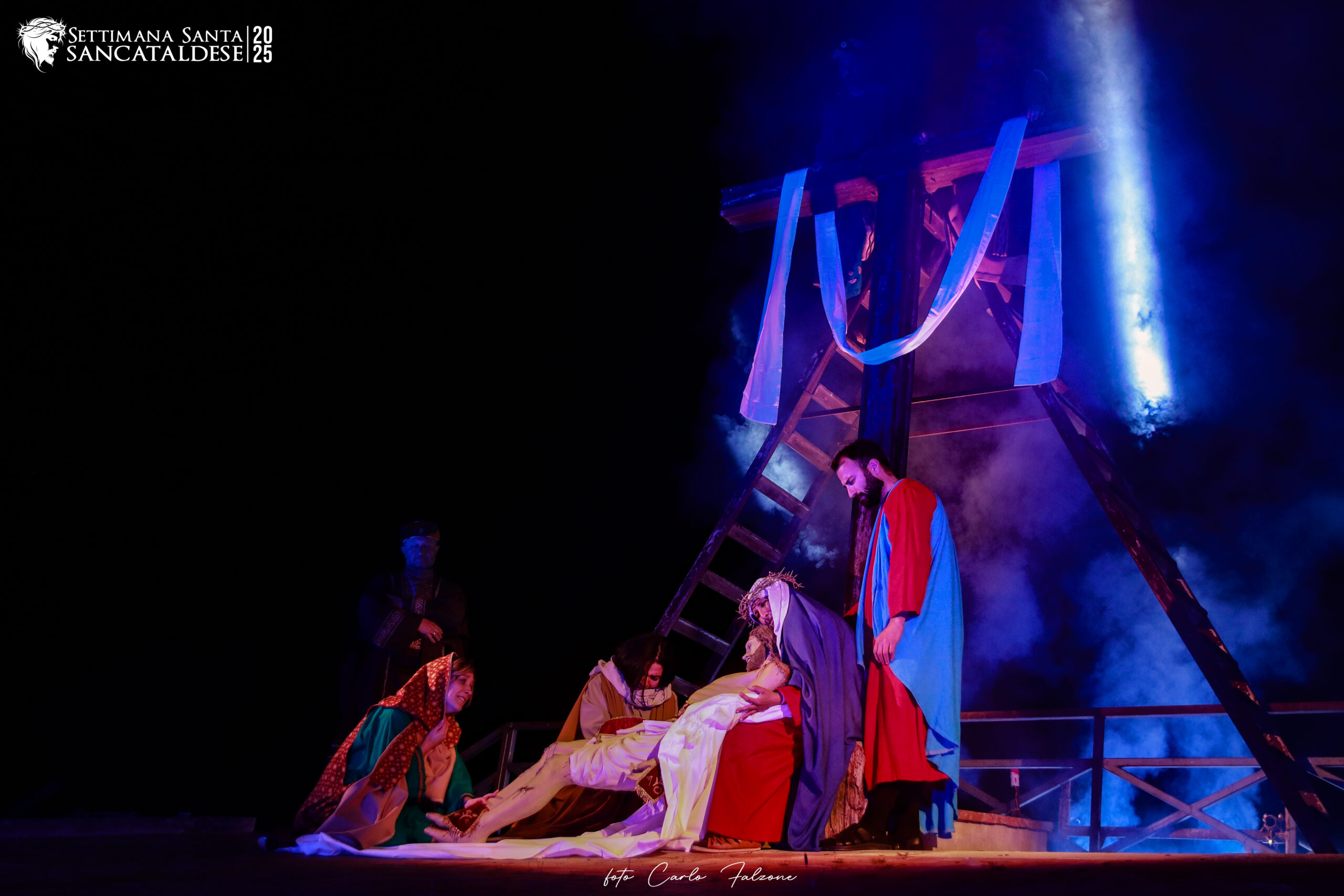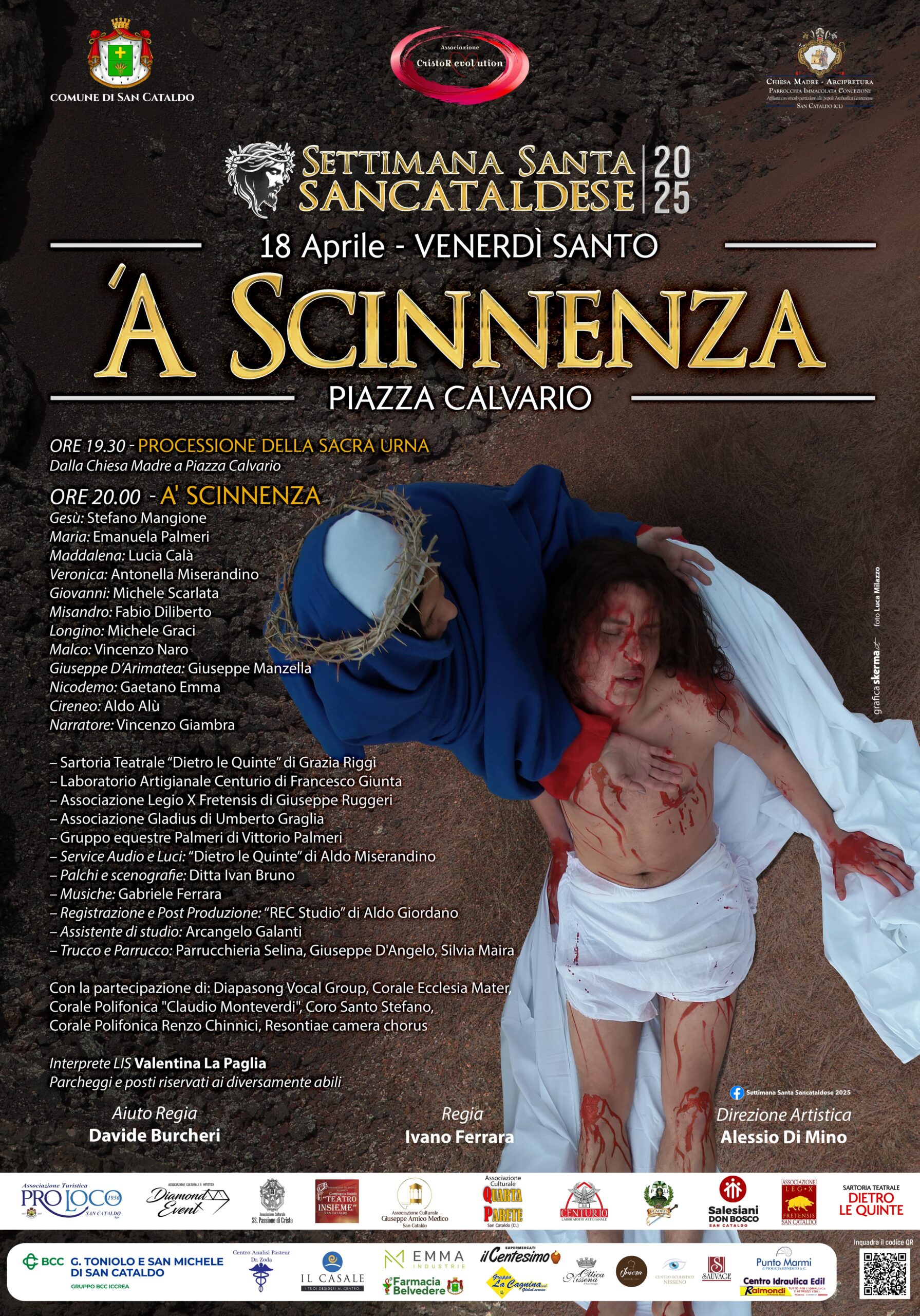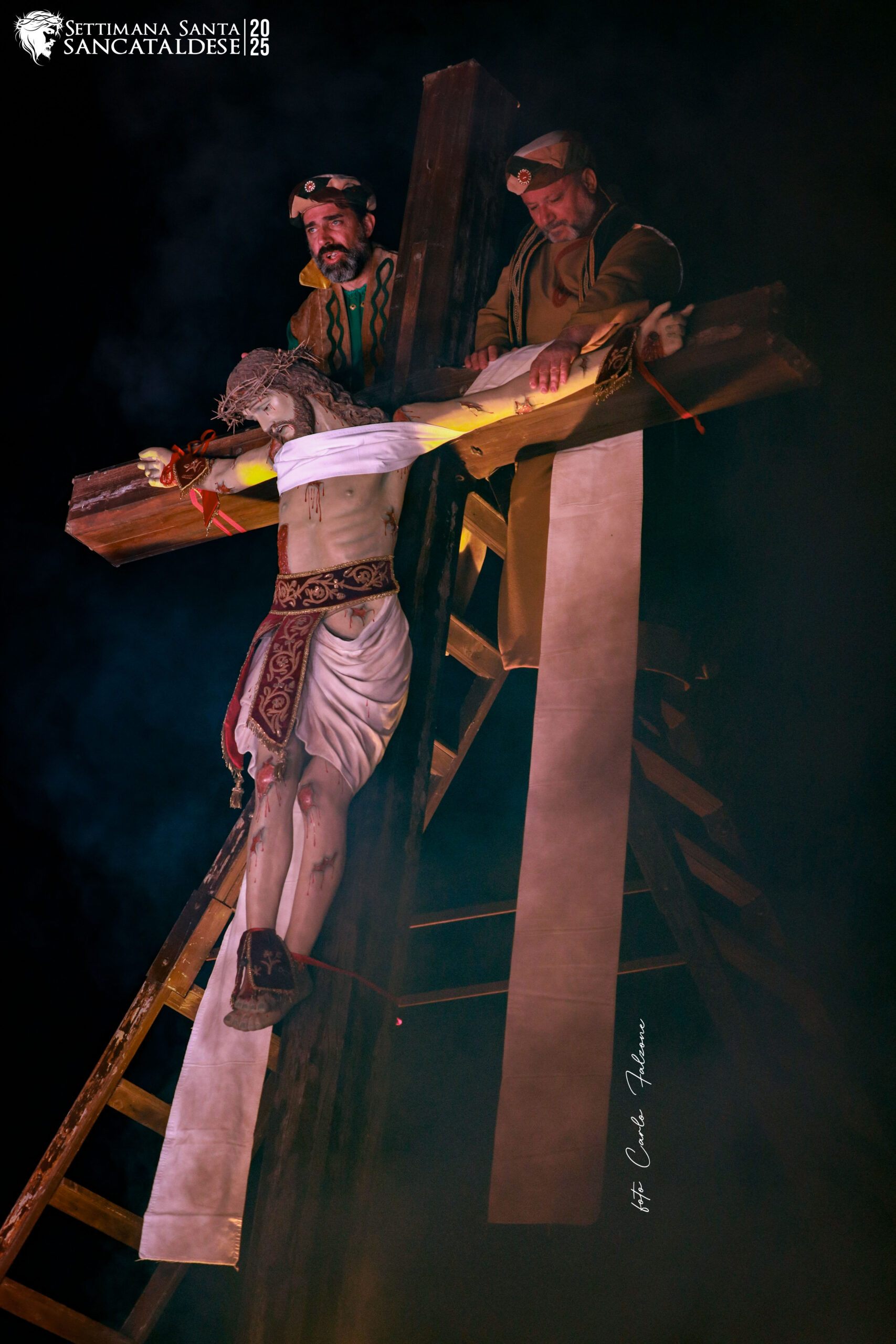 Questa tradizione ha origini nel XIX secolo, grazie all’iniziativa dell’avvocato Francesco Medico, che scrisse un testo teatrale intitolato La discesa dalla Croce. Da allora, la Scinnenza è diventata un appuntamento fisso per la comunità sancataldese, coinvolgendo numerosi cittadini e associazioni in un’opera collettiva di grande impatto emotivo e spirituale.